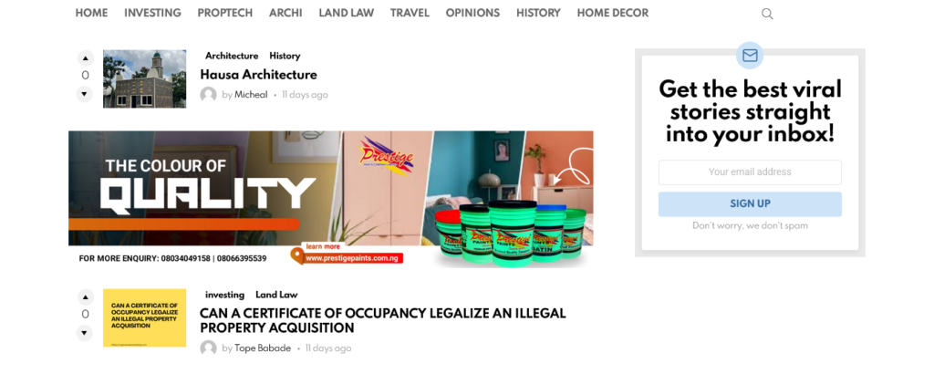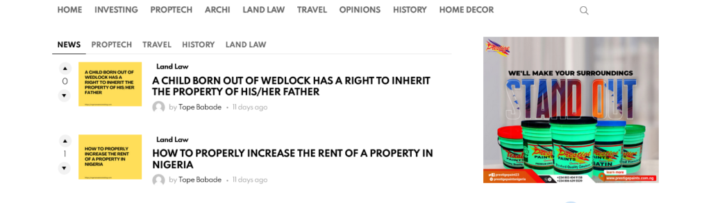 Welcome to Nigeria Real Estate Blog Your gateway to Nigeria’s dynamic property market, offering insights on trends, investments, buyer guides, and more. Partner with us to reach a highly engaged audience of real estate enthusiasts, investors, and homebuyers. Our platform drives targeted exposure, helping brands like Prestige Paint and ARM Insurance generate qualified leads and boost visibility.